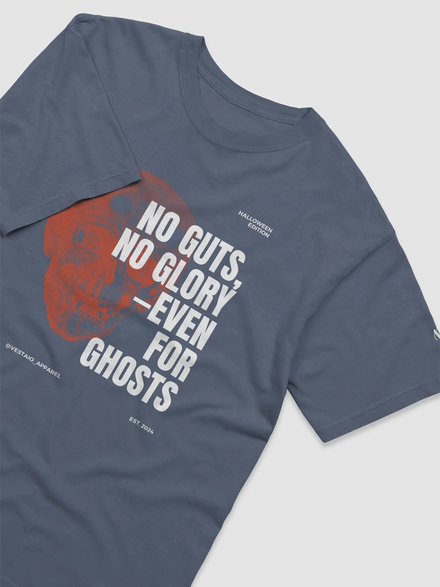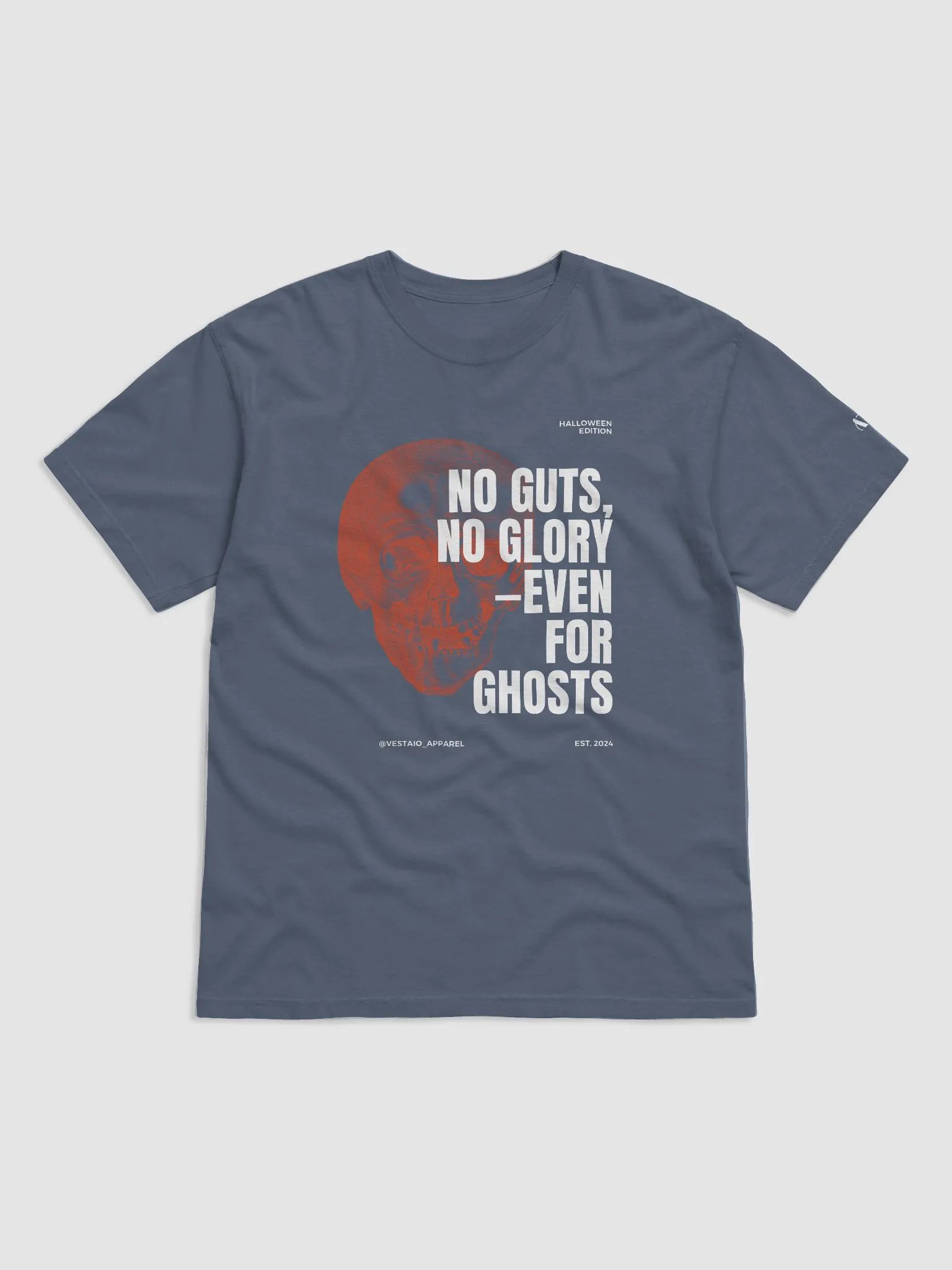 "No Guts, No Glory—Even for Ghosts" Skeleton Skull Graphic T-Shirt | Motivational Halloween Tee